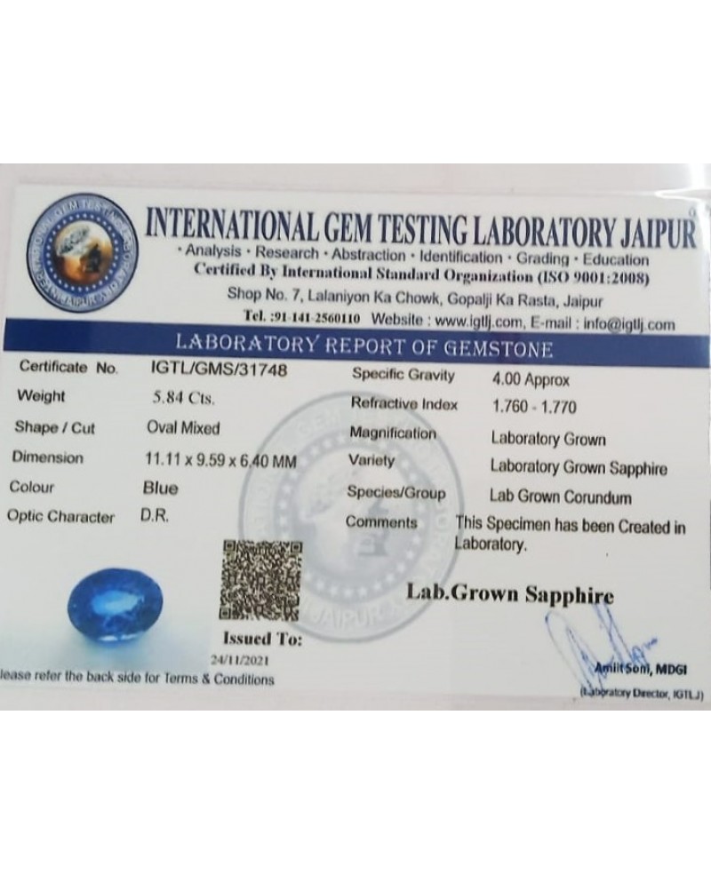 LAB GROWN BLUE SAPPPHIRE 5.84 Cts OVALMIXED